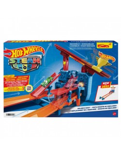 The Hot Wheels STEAM Balance Shift Playset helps kids understand the science of equilibrium through fun, competitive play as they use the slam launcher to send their cars up and over a seesaw to secure the trophy.