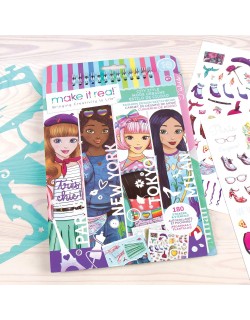 The Make It Real Fashion Design Sketchbook - Pastel Pop Kit gives young creators everything they need to explore pastel and rainbow-themed fashion design. With 105 stickers, stencils, and a full design guide, kids aged 6+ can sketch outfits, customize styles, and express their creativity while building real-world artistic and fine motor skills.