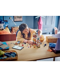 The LEGO Castle Bed & Breakfast (42638) is a 1,311-piece French-style 3-story hotel playset. The set features detailed rooms, including a front desk, sunroom, bedroom, living room, balcony, master suite, bathroom, and attic. It comes with 4 LEGO Friends mini-dolls, a dog figure, and numerous accessories, allowing for creative and imaginative play.  This set makes an ideal gift for those who enjoy building, creativity, and LEGO role-play.