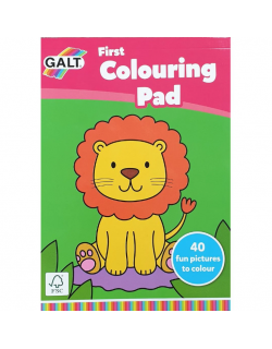 The Galt First Colouring Pad is an activity book for children aged 3 years and up. It contains 40 pictures with thick lines for easy coloring, which helps to develop fine motor skills and hand-eye coordination.