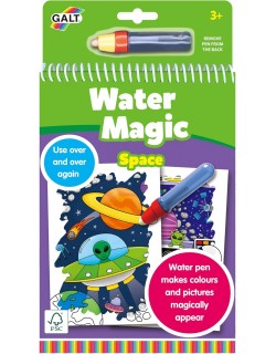 Galt Water Magic Space lets kids blast off into a colourful space adventure! Using the refillable water pen, children aged 3+ reveal vibrant rockets, planets, and aliens on 6 reusable pages. The pictures magically appear when wet and fade when dry, so they can colour again and again—mess-free!