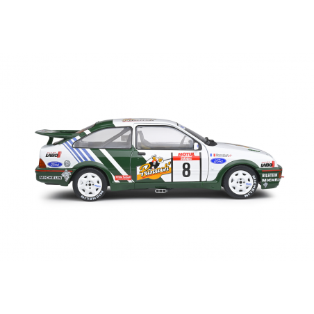 The replica of the Ford Sierra Cosworth driven by Auriol and Occelli at the 1988 Tour de Corse. This collector’s model features authentic rally decals and period-correct styling.