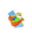 LENA® sand set, 6 pieces. Bucket Ø 16 cm - capacity 1.4 L, shovel, rake and 3 vegetable molds. Sorted by color. Suitable for children aged 12 months and over.
