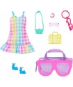 Barbie accessory packs include a stylish bag, a fashion, and five themed pieces for storytelling. Once Barbie is dressed, she can carry her essentials in the bag for a fun adventure! The accessories fit most Barbie dolls (sold separately). Colors and decorations may vary.