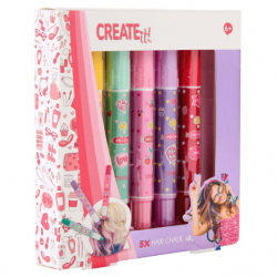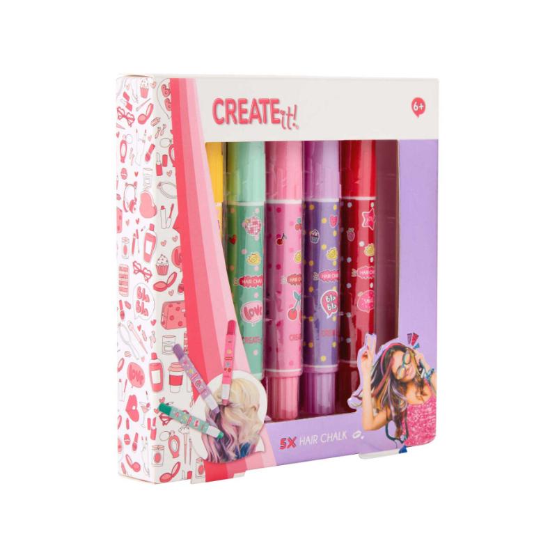 Add a pop of color to your hair with the Create It! Hair Chalk Pens 5-pack! This set includes five vibrant, washable colors yellow, pink, blue, green, and purple. Easy to apply and wash out, these chalk pens let you experiment with fun styles for parties, festivals, or everyday play. Let your hair be your canvas with Create It!