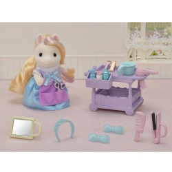 The Pony's Stylish Hair Salon set features a gorgeous hair salon, and the silky-haired Pony girl, Sally. Includes accessories for hair and makeup play.