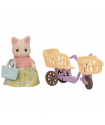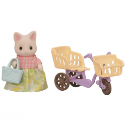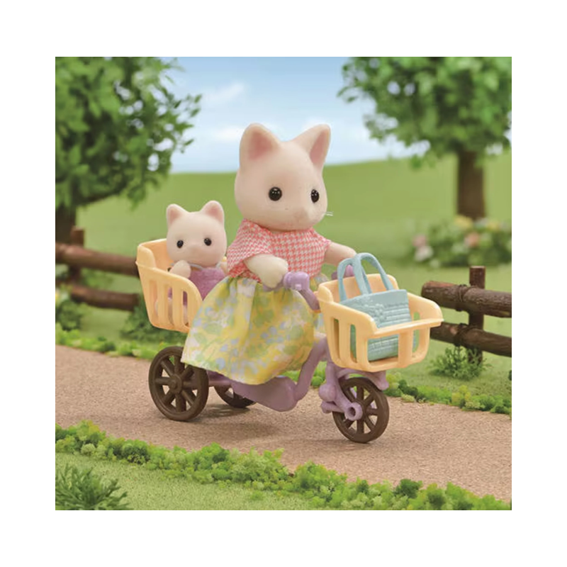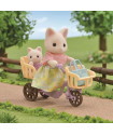 Cherice, the Floral Cat Mother, is ready for a fun outing! She rides her bike with a shopping bag, excited to find yummy treats at the market.