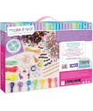 The Mega Jewellery Set is a complete craft kit for creating trendy jewelry. It includes over 790 beads, gemstones, 15 metal clasps, a bracelet maker, and instructions. This set promotes creativity, fine motor skills, and cognitive development as kids design their own necklaces and bracelets.
