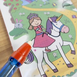 This chunky spiral book features 6 magical unicorn pictures that come to life with the refillable water pen. Watch as vibrant colours appear when you paint with water, then fade away once dry—so you can colour again and again! The sturdy pages and travel-friendly size make it perfect for keeping kids entertained on the go.