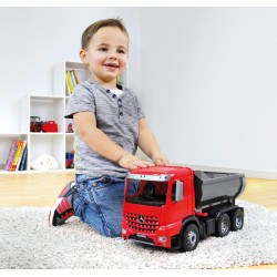 WORXX dump truck Arocs. 3-axle, 5 mm galvanized steel axles. Lockable tipping body with tailgate. 45cm. Indoor & outdoor suitable for children aged 3 and over.