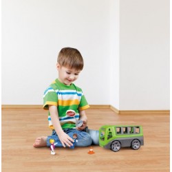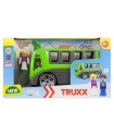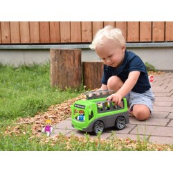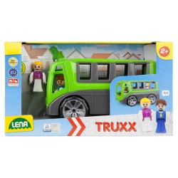 TRUXX bus. Galvanized steel axles. Driver's cab and side windows can be opened and played with. Space for a total of 9 figures. Incl. sticker. With LENA® toy figures, bus driver and girl. 28cm. Indoor & outdoor suitable for children aged 2 and over.