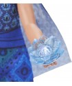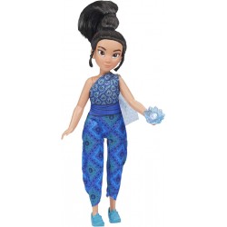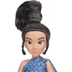 Inspired by Disney's Raya and the Last Dragon movie, this Raya musical toy wears a striking blue jumpsuit with matching shoes and a beautiful updo hair style