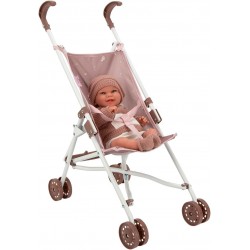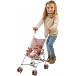 This pink and brown stroller for kids have a cute teddy bear print is perfect for city strolls. Made with high-quality materials, it’s durable, lightweight, and foldable for easy storage and travel. Note that the doll is not included.
