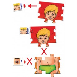 -The puzzle pieces are printed with a graphical image of the human body that has to be fixed by the child