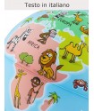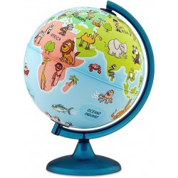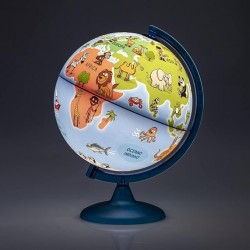 Illustrated world map for children, with pedestal and rod in blue frost plastic, diameter 25 cm and sphere that rotates on its axis