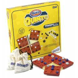 The Quinto board game is simple: line up five marbles in a row before your opponent. It features funky, colorful marbles and comes with an eco-friendly cloth bag for easy storage. The package includes 1 Skoodle Play Unit, 36 marbles (18 of each color), a marble bag, and an instruction manual.