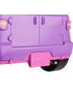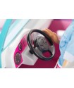 • Features a purple body, pink interior, silvery accents, and rolling tires.