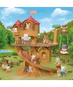 Adventure Tree House's rope swing can go up and down and work as a lift. Place the log ride on the huge slide to make it go down. There are four small rooms. There is a secret passage inside the tree, just for the babies. The hut on the terrace can be removed and played with separately.