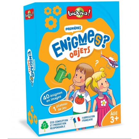 Avec Mes Premières Enigmes - Objets, les enfants, à partir de 3 ans, tentent d’être les plus rapides à deviner les objets qui se cachent derrière 3 indices illustrés, instructifs et amusants. Les joueurs doivent ensuite faire preuve d’adresse en lançant le jeton sur le plateau pour tenter de gagner plus de cartes Mes Premières Enigmes - Objets !