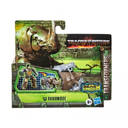Rhinox, the strong Maximal warrior, charges into battle with his Maximal and Autobot allies by his side. Classic Transformers robots and beast robots join forces in an epic alliance! Weaponize the Beast Alliance Beast Battle Changer Rhinox figure with Beast Alliance beast weapon and beast armor toys to gear up for battle!