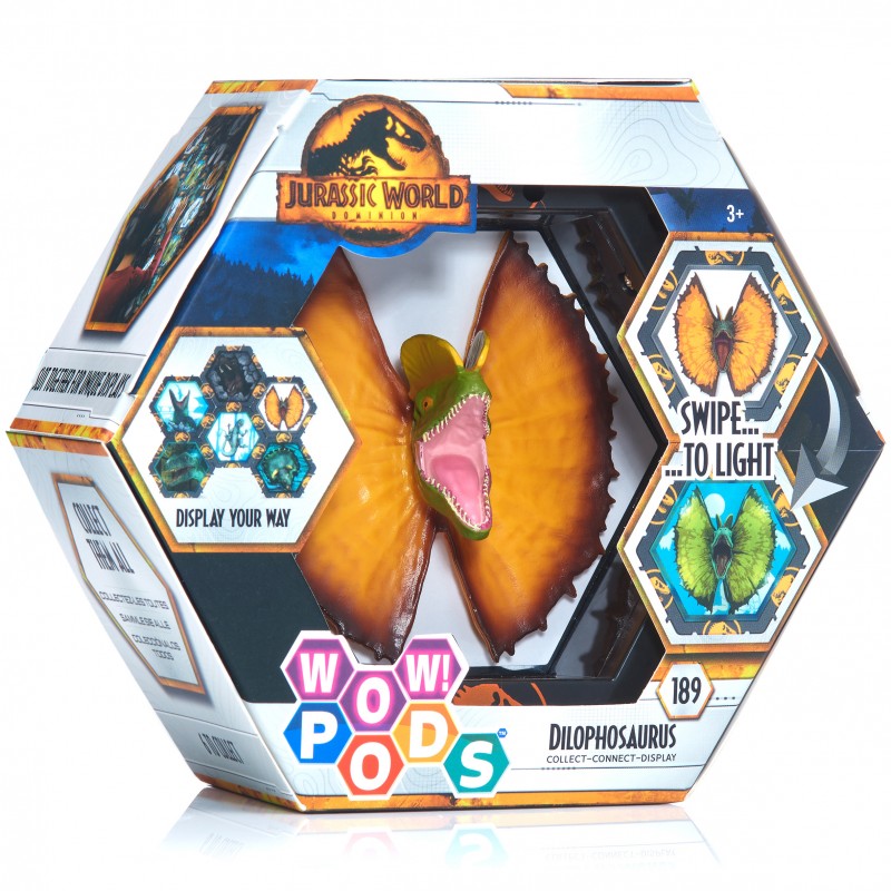 COLLECTIBLE TOY FIGURE - Joining the Wow Pod collection is the Dilophosaurus from Dominion, part of the Jurassic World Franchise. Fans will love the detailed figure of the classic Jurassic World character.