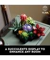 Create a low-maintenance, elegant plant display with the LEGO Succulents set. Build 9 different succulents, each inspired by a real-life variety, and display them in small containers. Personalize your arrangement by combining or spreading them around your home, office, or dorm.