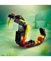 The LEGO NINJAGO Dragon Shrine playset features a stone dragon, waterfall, cherry blossom tree, and secret room. It includes NINJAGO minifigures, a training area, and interactive elements like a movable dragon and a hidden room activated by the library books.
