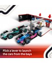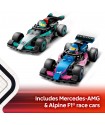 LEGO City F1 Garage & Mercedes-AMG & Alpine Cars is a fun racing playset for kids. It opens into a garage with workbenches, tools, and launch bays to send the race cars speeding off. Includes 2 F1 cars, 2 drivers, 4 mechanics, and loads of racing fun!