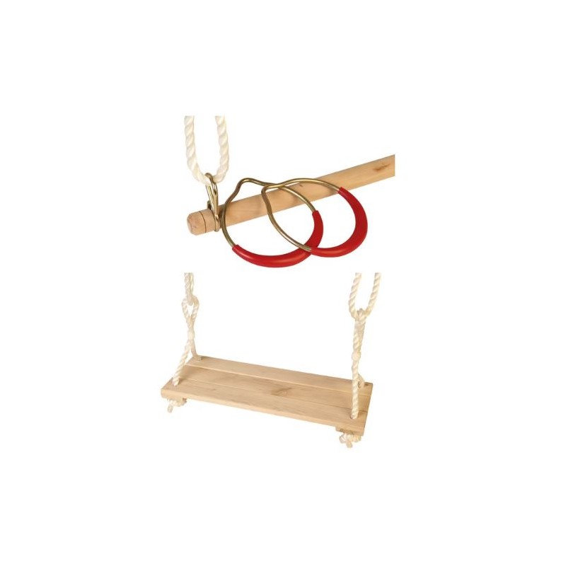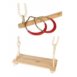 Scope of delivery: 1 set, consisting of a board swing, trapeze bar and two gymnastics rings Maximum load capacity: 50 kg Material: wood