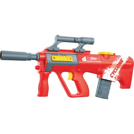 The WaterBlast Cyclone Red offers an impressive 8-10 meter range and a 450ml water tank for long-lasting fun. With its rugged design, it provides powerful performance and a strategic advantage. Rechargeable via USB with a handy screwdriver for easy recharging, it ensures endless water battles with less hassle.