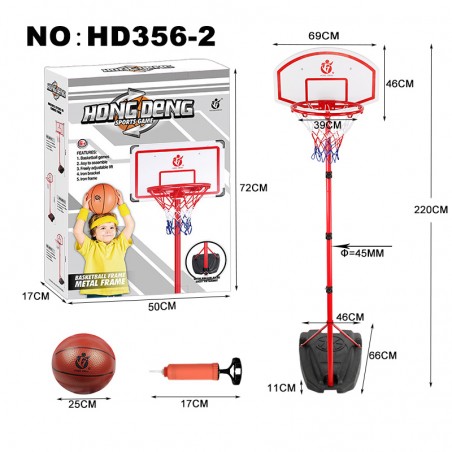 Reach new heights with this 2.2 m adjustable basketball stand for adults, featuring a sturdy iron pole, triangle bracket for extra support, a 39 cm iron hoop, and a 25 cm ball—perfect for backyard games, practicing your shots, or enjoying hours of basketball fun at home.