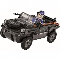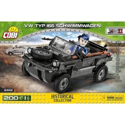 You can build a floating VW Type 166 Schwimmwagen military car from 200 COBI building blocks. The detailed vehicle is accompanied by a figure of a German air force soldier equipped with a Mauser rifle and a food cap with a print. The entire set is completed by a sign with the name of the vehicle.