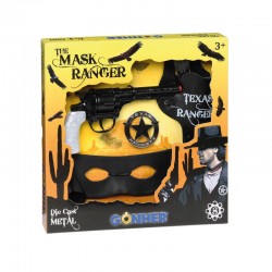 Mask Ranger” cowboy set consisting of a metal pistol ref. 80/6, holster with belt, mask and metal sheriff star. Use 8-shot primers.