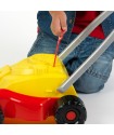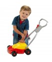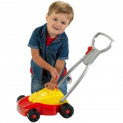 The Klein children's lawnmower is sturdy, battery-free, and easy to push. It makes realistic sounds, like a ratchet when pulling the starter and a rattle when pushing. Safe with no blades, it’s a fun, durable toy designed for young children to enjoy outdoor play.