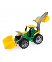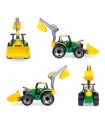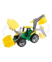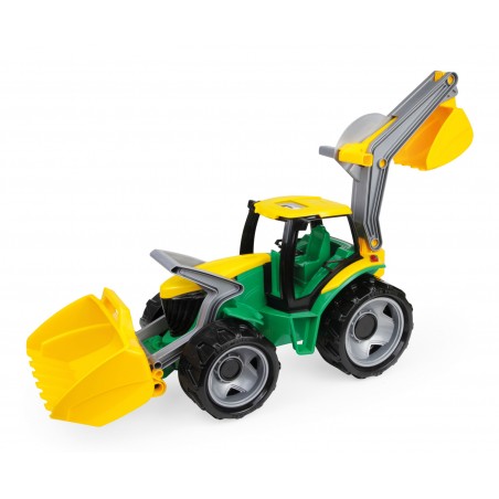 The LENA® GIGA TRUCKS Tractor features a front shovel, excavator arm, and detachable boom. With steel axles, ergonomic handles, and a sliding roof, it's 62 cm long and suitable for kids 3+ for indoor and outdoor play.