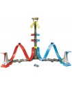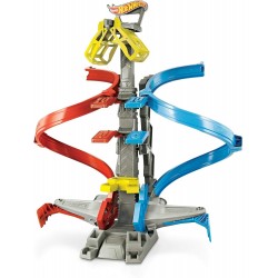 Take racing to new heights! Cars zoom through a crazy helix loop and launch toward a winner’s cage that can soar up to two feet high! Raise or lower the cage for an extra challenge and score points along the way. The track snaps together easily and folds up for quick storage. Includes one 1:64 scale Hot Wheels car — the perfect gift for racing fans!