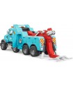 Recovery trucks are big and powerful, and this Mack recovery truck is exciting to play with. It can lift and tow broken-down vehicles using its folding towing arm and cable winch. The cab doors open, and the hood lifts up, making rescue play even more fun
