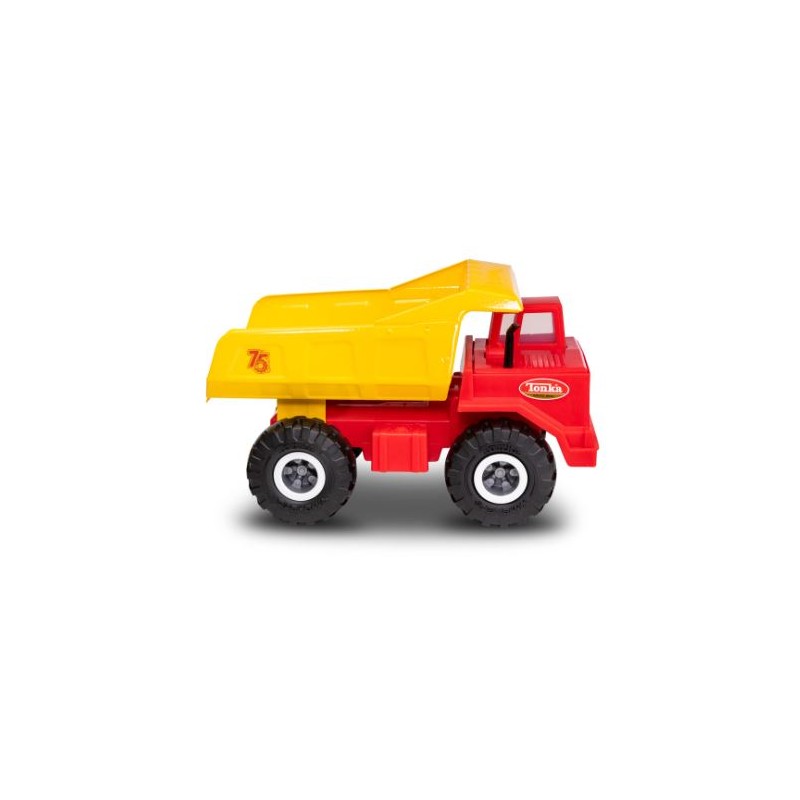 75th ANNIVERSARY DESIGN This Steel Classic Mighty Dump Truck was inspired by the 1968 Tonka Dump Truck. It features a fire red cab, golden yellow dump, original markings, and a 75th anniversary badge, so you can dominate your job site in style.